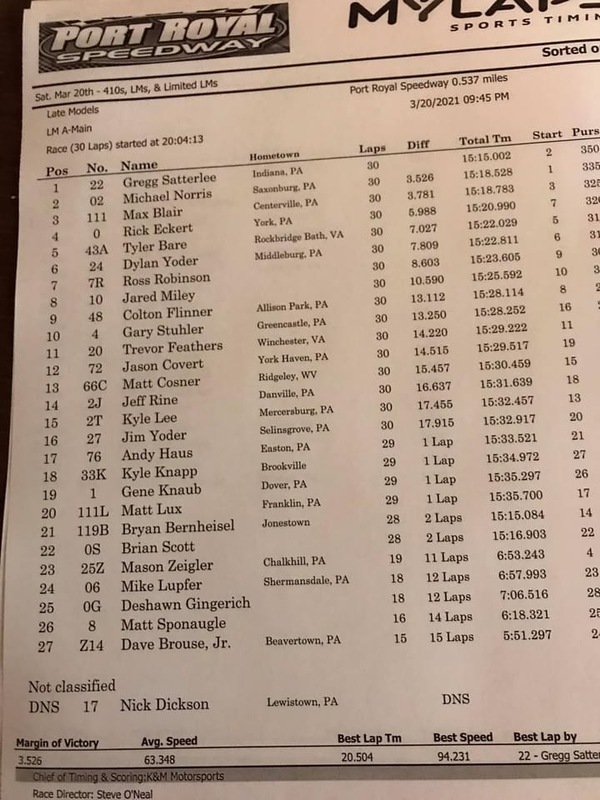 Started 22nd in the feature and finished 22nd after the checkered flag flew for the 30 lap affair!